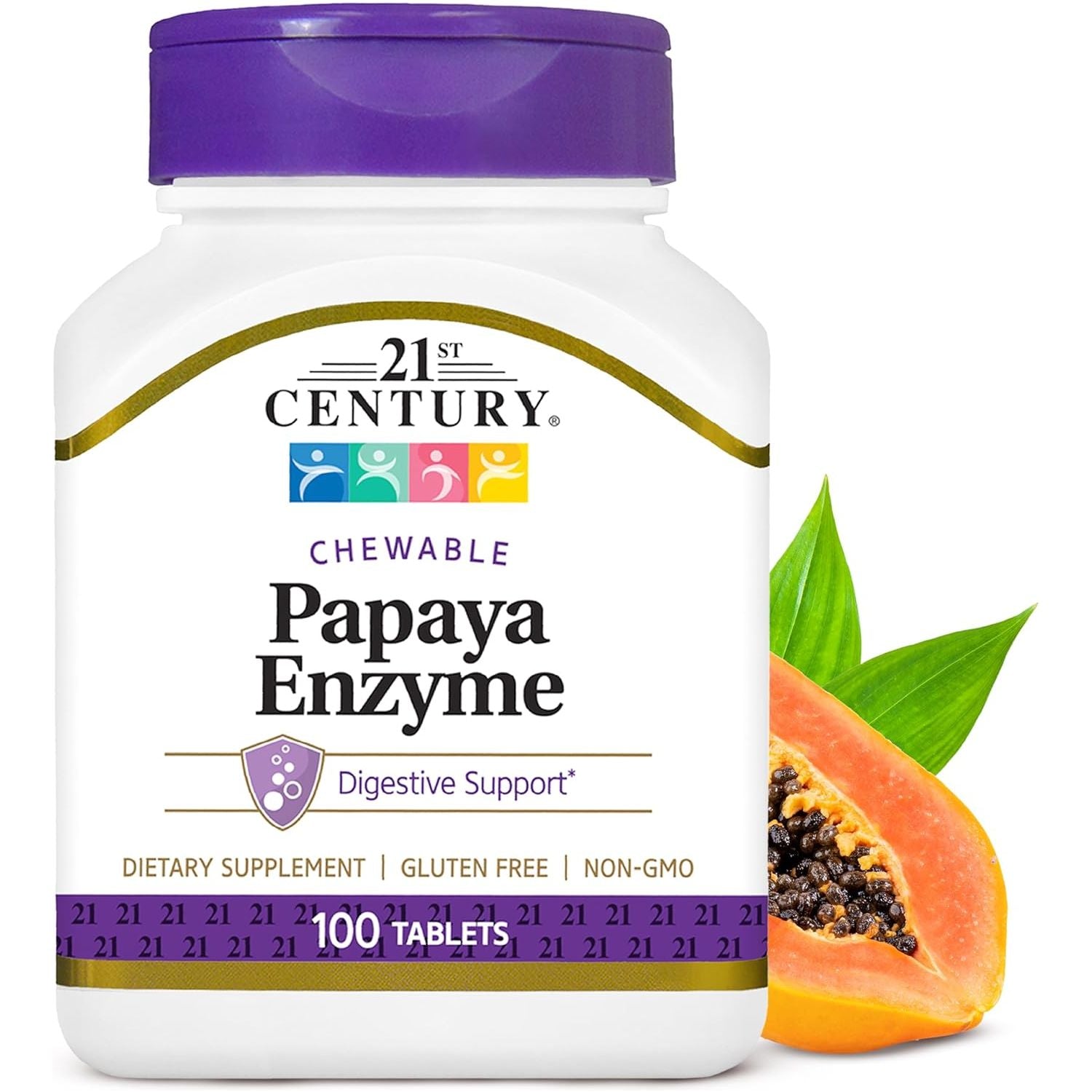 21st Century Papaya Enzyme Chewable Tablets (Natural Digestive Aid) are designed to help with digestion and gut function. Featuring papaya and pineapple enzymes, this product is a complementary addition to your daily wellness regimen.