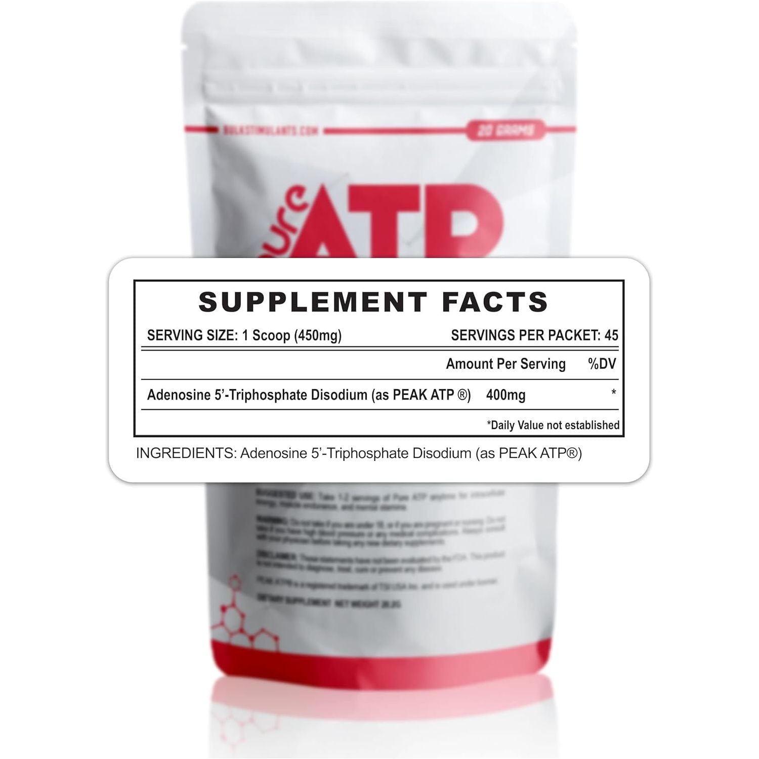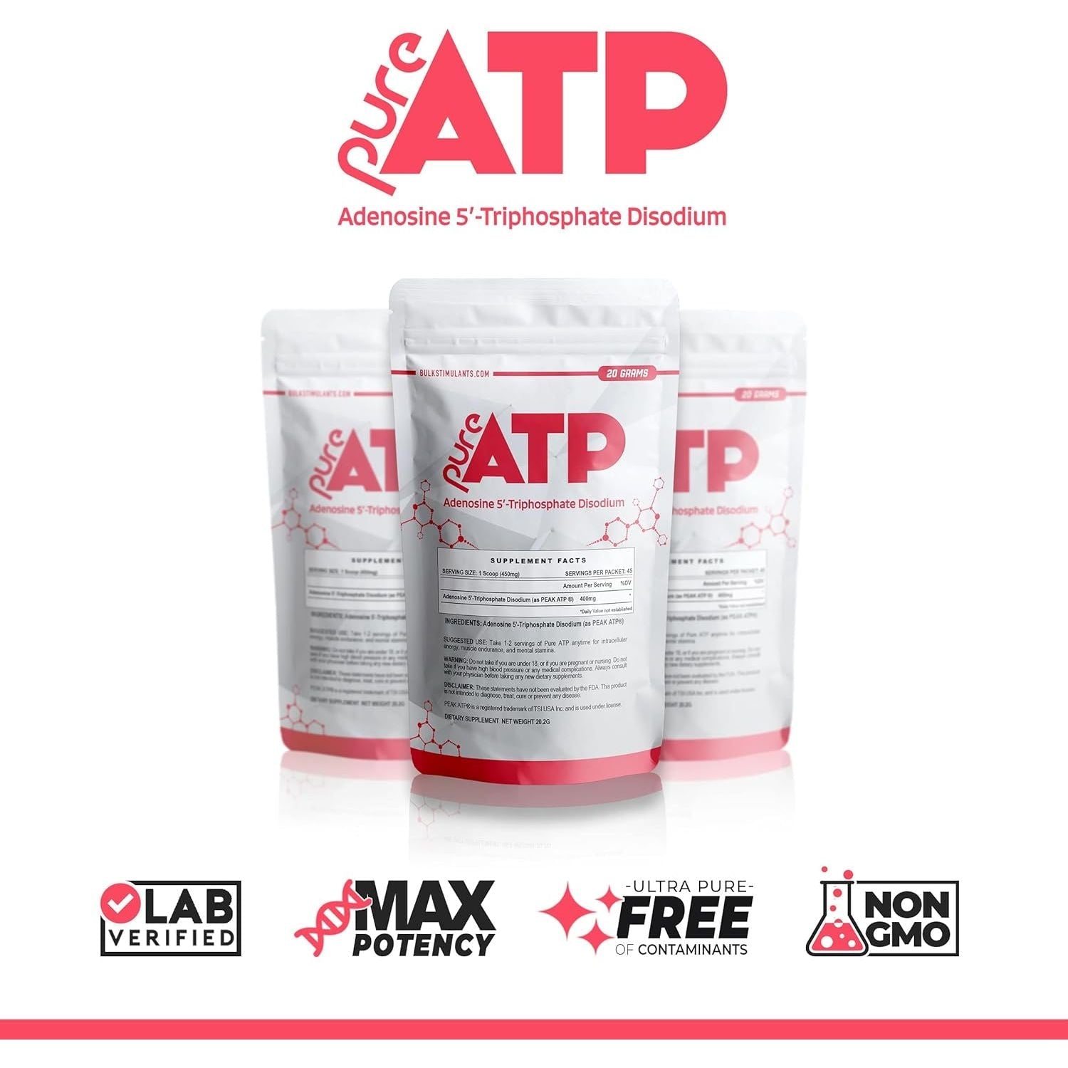 Bulkstimulants Pure ATP Adenosine Triphosphate Powder And it provides pure ATP for the perfect energy boost, no matter how intense your workouts or how strenuous your activities. Each container contains 20 grams of pure ATP, which helps enhance muscle pump, speed up recovery, and optimize the overall efficacy of exercise. Perfect for athletes, bodybuilders and anybody striving to enhance overall performance and recovery, Pure ATP from Bulkstimulants is a vital lliance within your workout routine.
