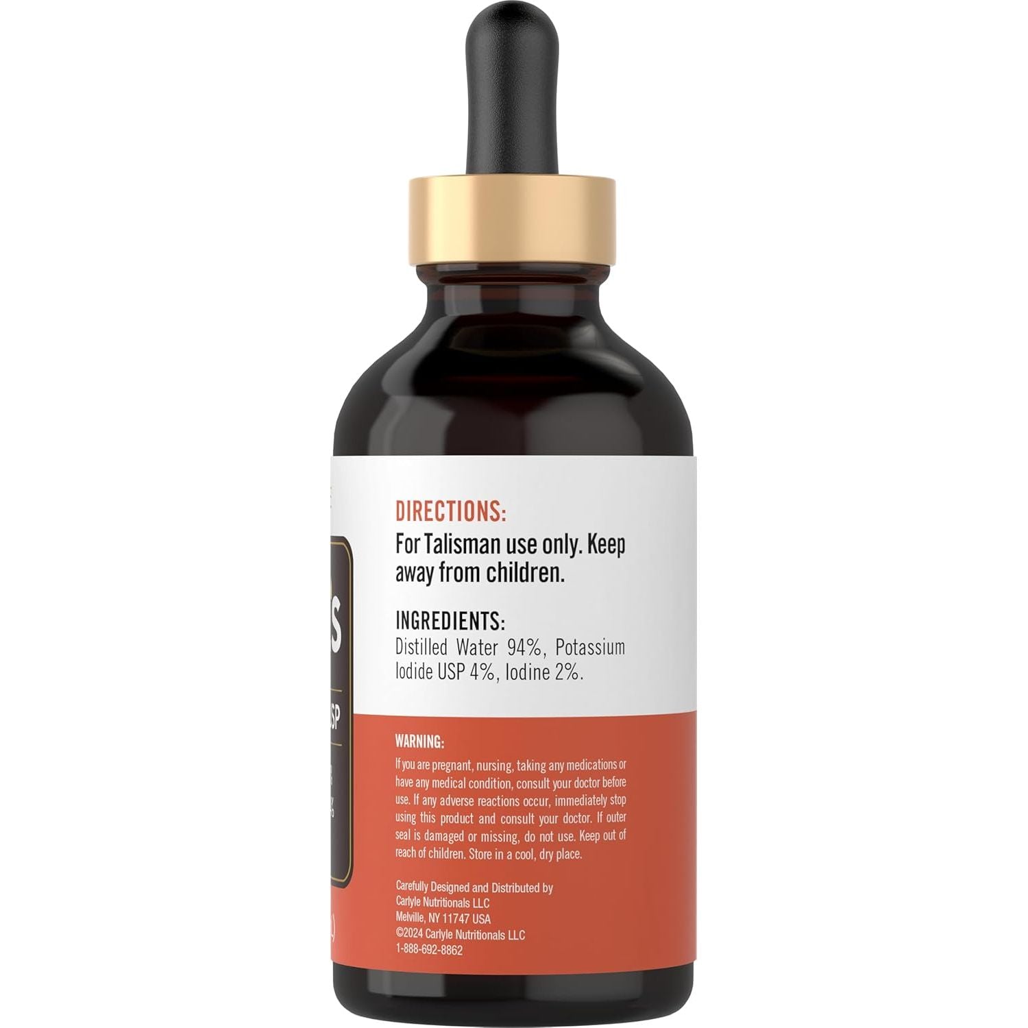 This advanced solution contains 2% Iodine, 4% Potassium Iodide USP and 94% Distilled Water, for Talisman Use Only. You will not find an expiration date on our product, but based on its natural properties, it will maintain its freshness. It's deep red in color and comes in an easy-to-use dropper bottle for convenient purposes.