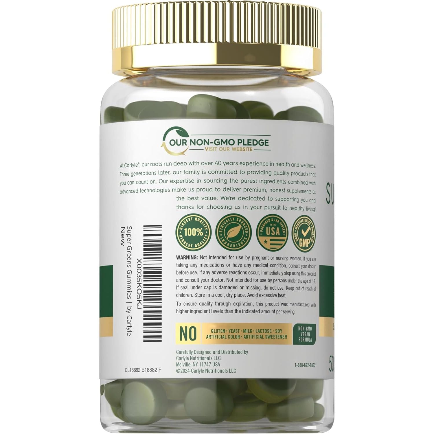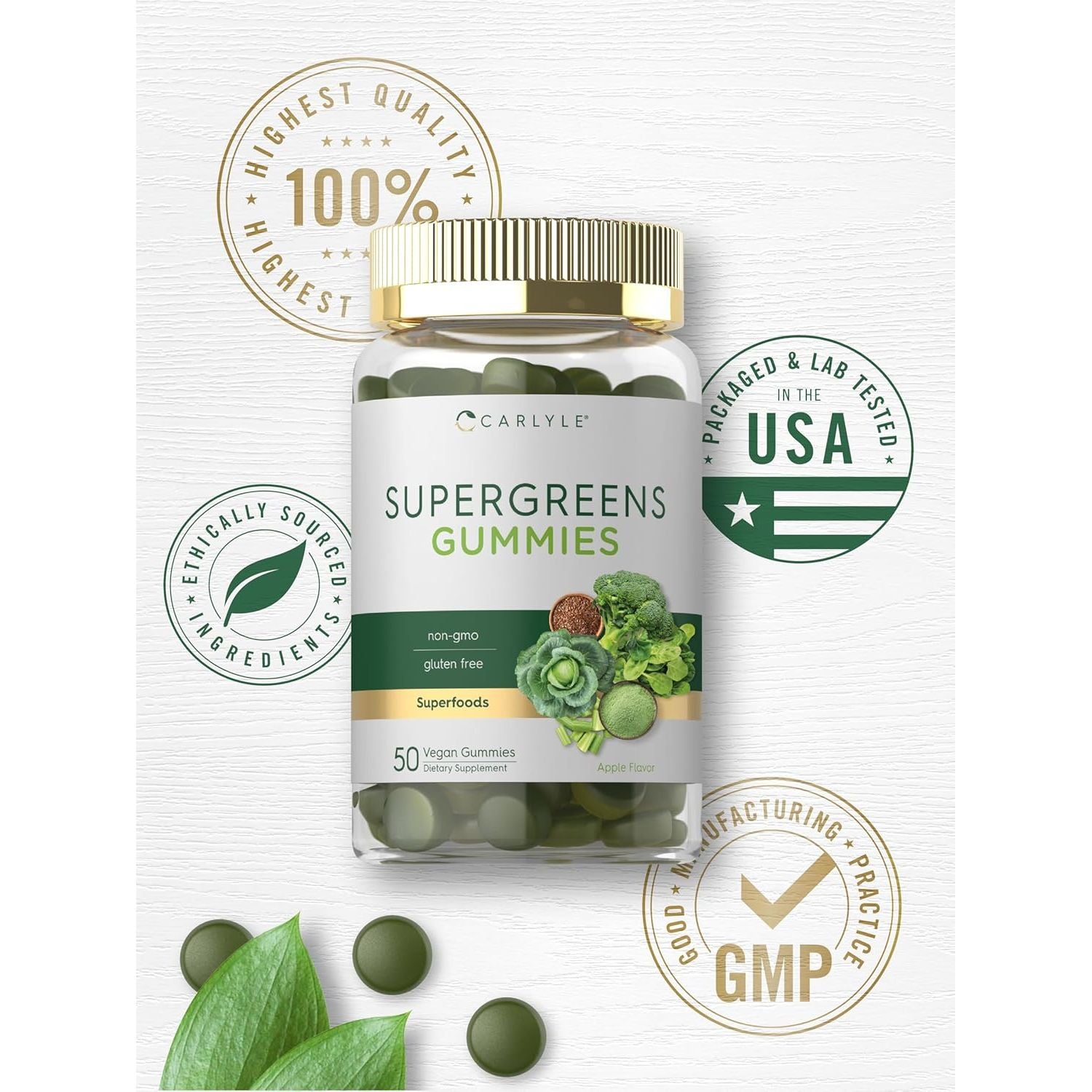 Carlyle Supergreens Gummies | 50 Count | Apple Flavor | Vegan, Non-Gmo and Gluten Free Supplement