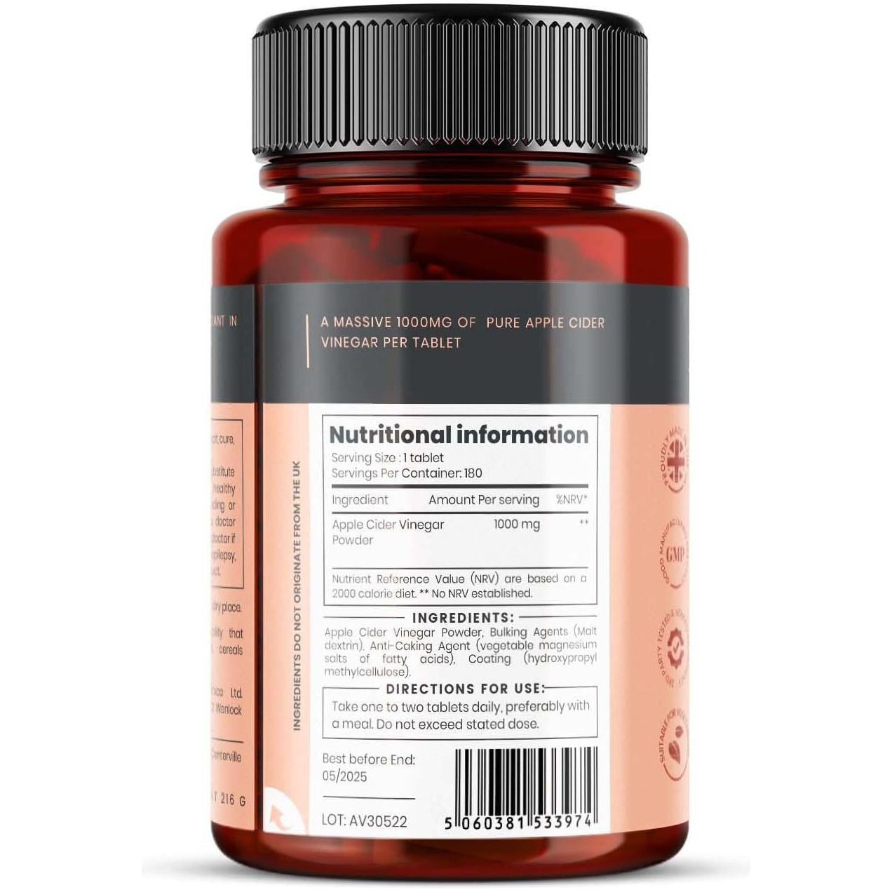 Double Strength Apple Cider Vinegar 1000Mg X 180 Tablets (6 Months Supply)