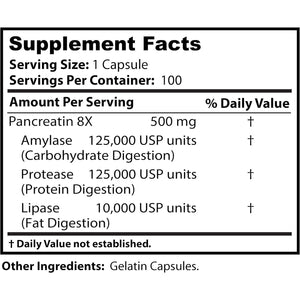 Dr. Clark Pancreatin 8X Enzyme Supplement, 500mg, 100 Capsules