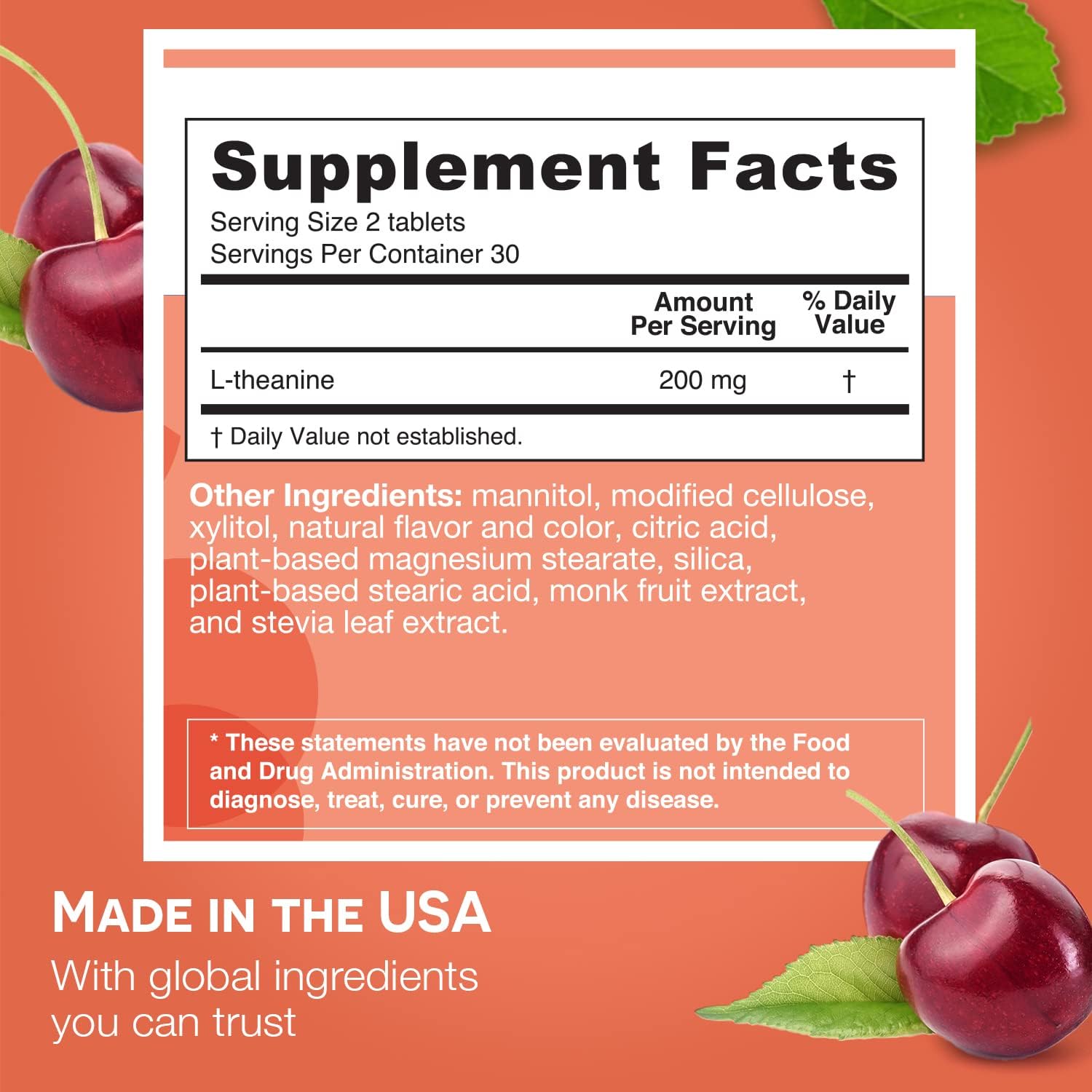 - Deal With Daily Stressors –– Modern life can sometimes be a little overwhelming. Help support your body and mind's response to stress when taking an L Theanine supplement.* Promote mental clarity with these L-Theanine 200 mg per serving tablets, and help handle whatever comes your way*
