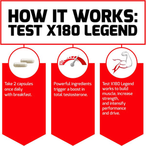 - BOOST TOTAL TESTOSTERONE: Test X180 Legend testosterone booster for men is scientifically formulated with ingredients to help your body harness both free and bound testosterone so you can maximize your muscle-building potential, regardless of age.