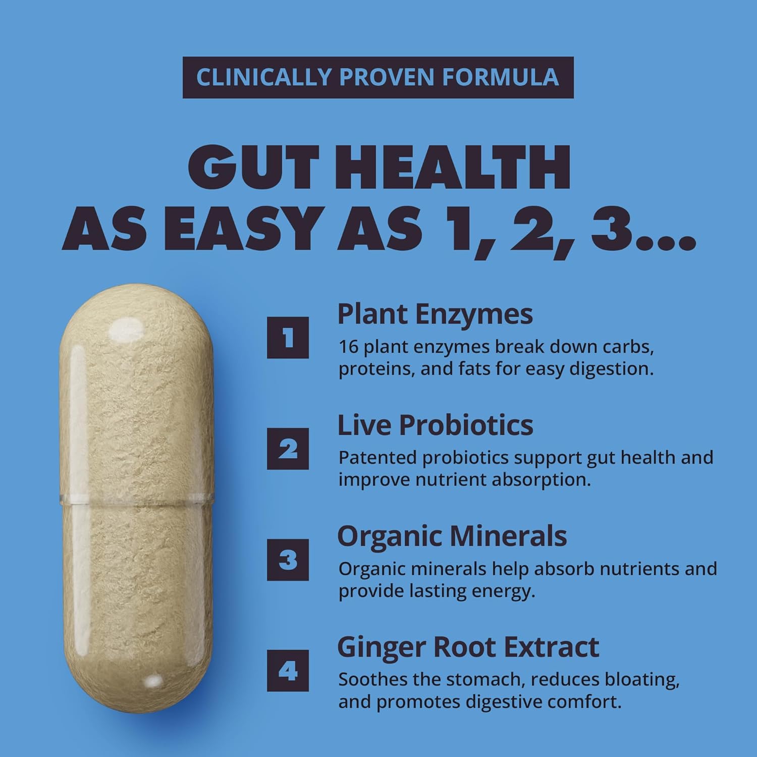 This formula features a combination of powerful digestive enzymes and probiotics to enhance digestion:
