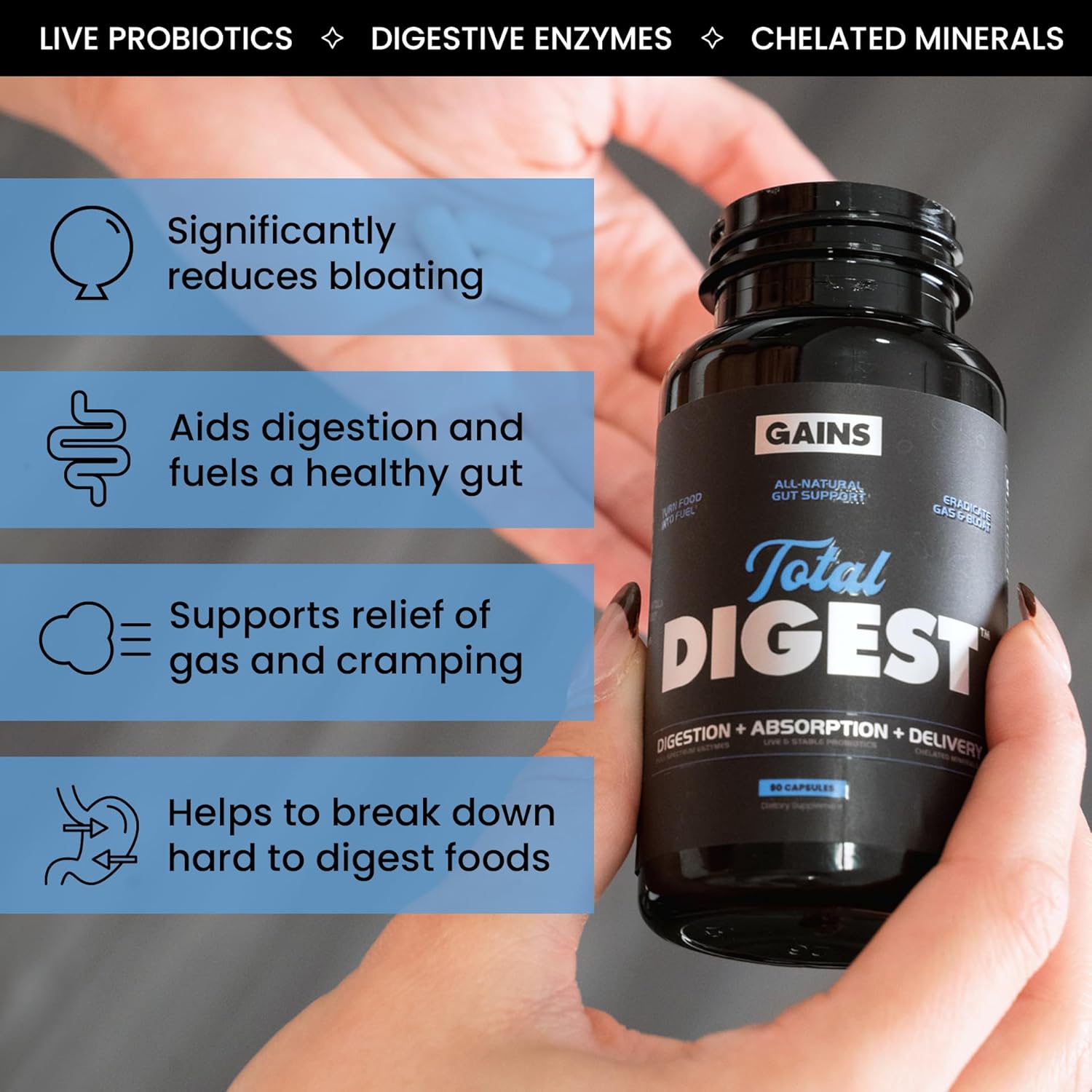 Gains in Bulk, Athlete Digestive Formula, Digestive Enzymes and Probiotics (90 Count)