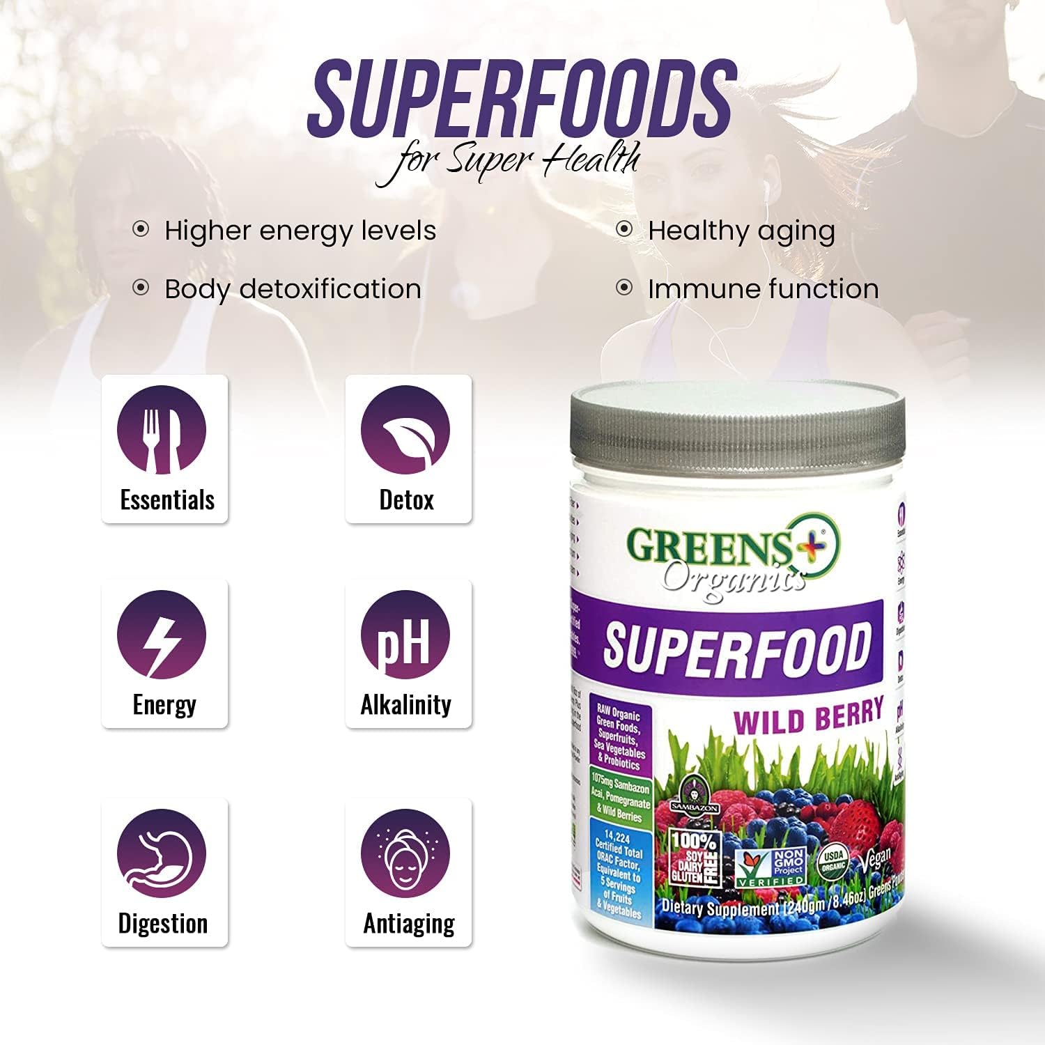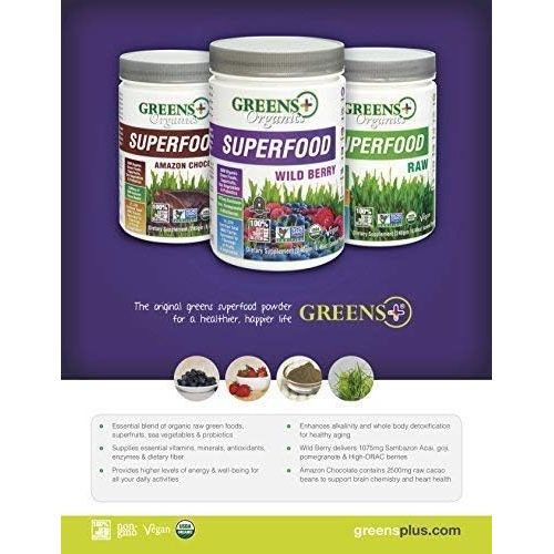 Greens+ Organic Wild Berry Superfood Powder for Morning Kick, Energy, Vitality Boost, Nutrition, Vibrant Health (8.46Oz)