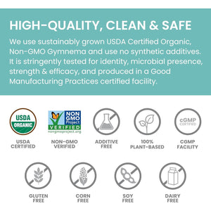 - ✅ Contains USDA-certified organic Gymnema Sylvestre