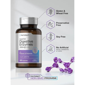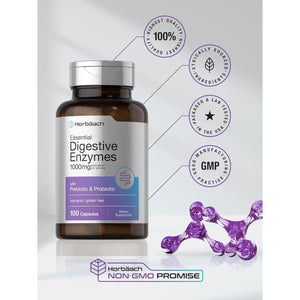 Horbäach Essential Digestive Enzymes | 100 Capsules | Enzyme Blend for Men & Women