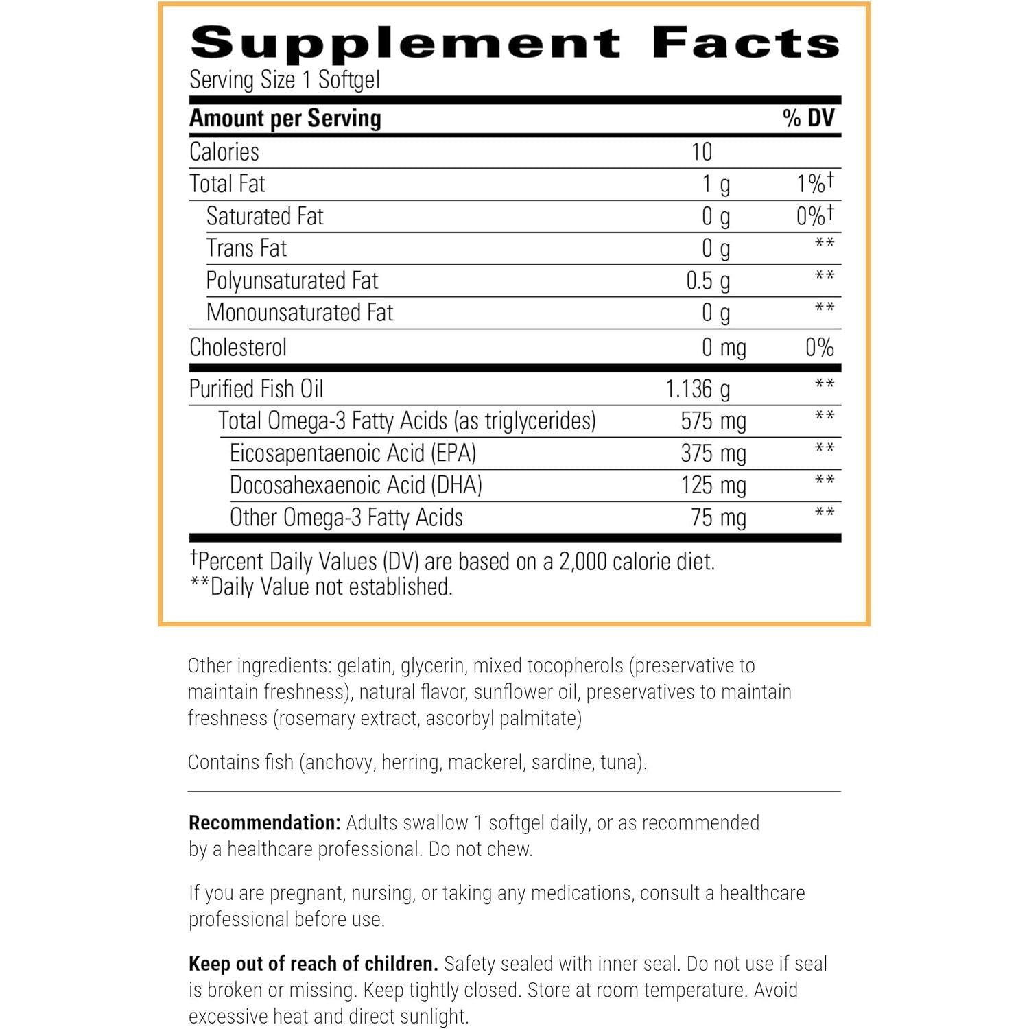 - 575 mg of omega-3s (EPA and DHA) in each softgel