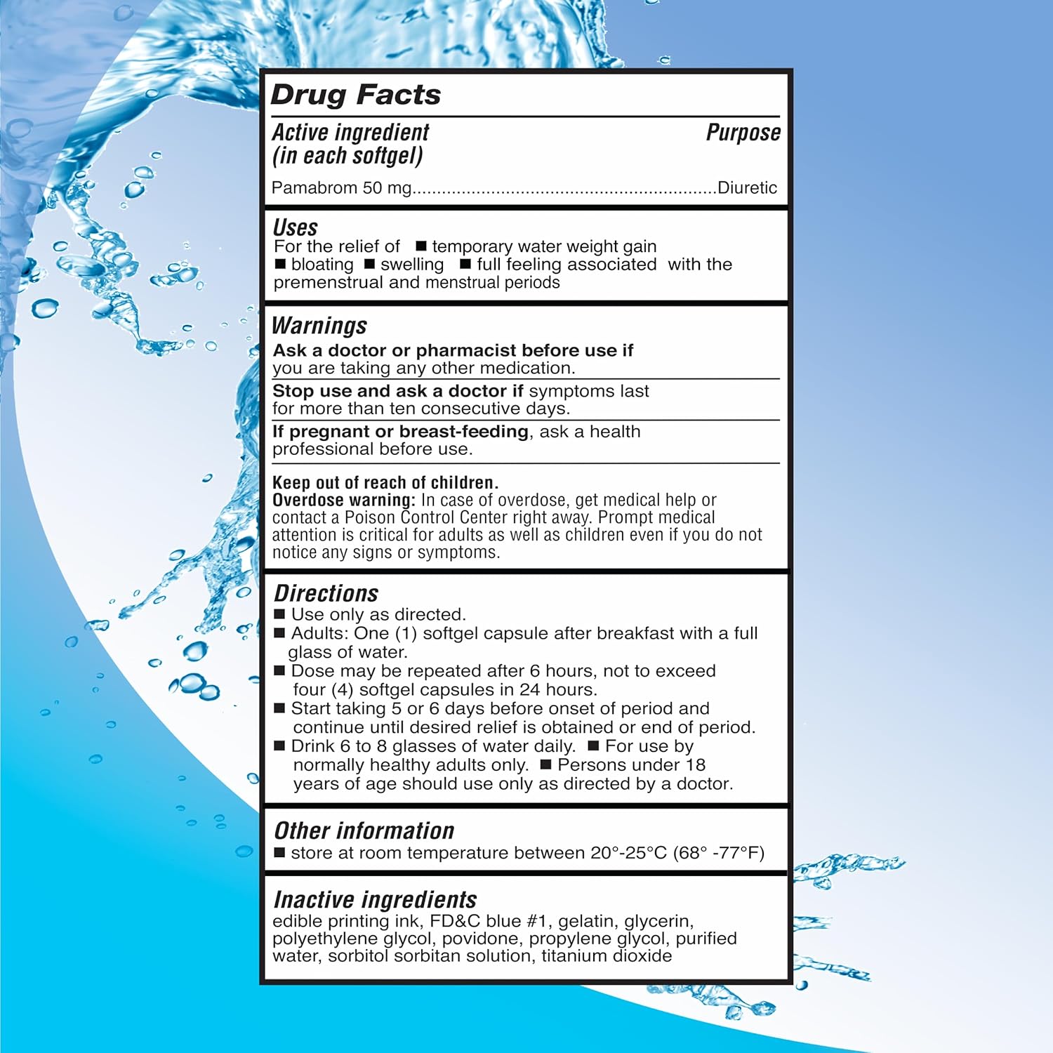Maximum Strength Caffeine-Free Diuretic Softgels, Pambrom 50mg - Relieve Heaviness Due to Water Weight Gain