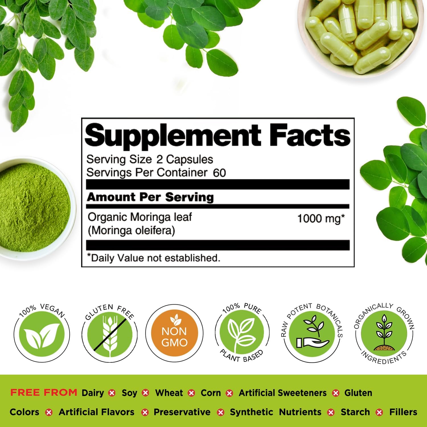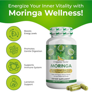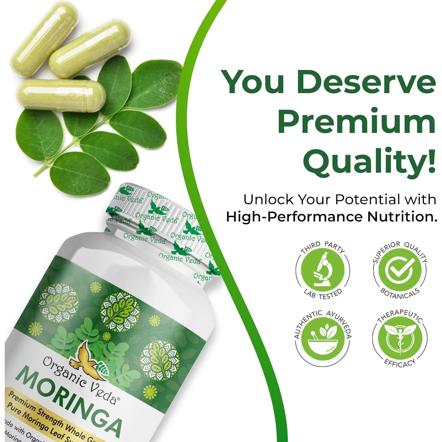 Organic Veda Moringa Leaf Capsules 1000Mg - Boosts Energy, Health, Wellbeing & Antioxidants Rich 120 Count