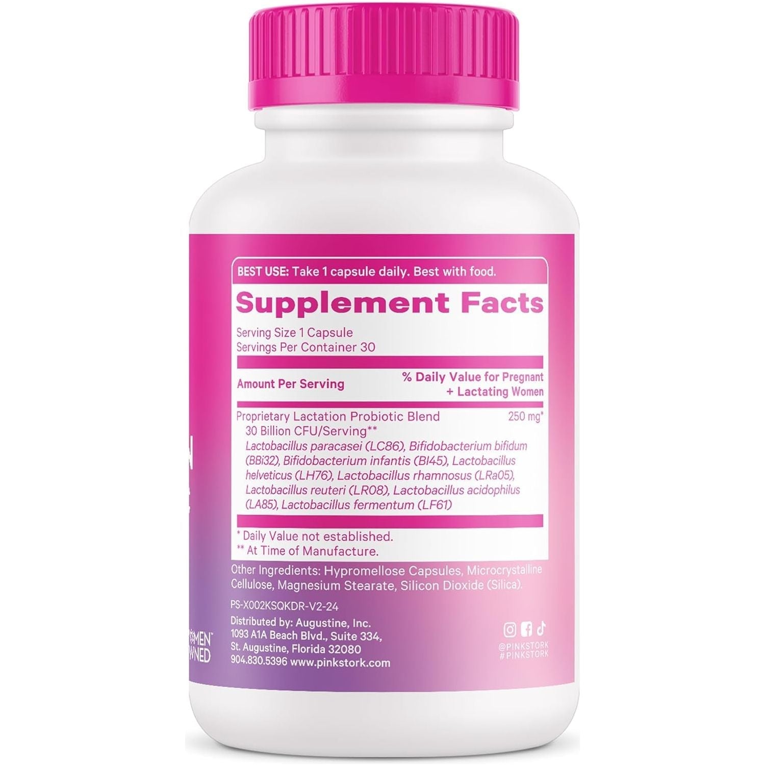 Pink Stork Lactation Probiotic - 30 Billion Cfus Multi Strain Postnatal Probiotics for Breastfeeding Women 30 Capsules