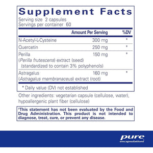 - Immune Supporting Blend: Contains a blend of N-acetyl-l-cysteine (NAC), quercetin, perilla leaf and astragalus extracts.*