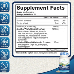 SinusClear features a combination of natural ingredients, including butterbur, quercetin, and stinging nettle, which effectively support sinus and nasal passage function naturally. These herbs have been used for centuries in traditional medicine systems to help clear, open airways and promote overall respiratory health.