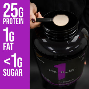 - SLOW-RELEASE PROTEIN - R1 Casein provides 25g per serving in a thick, satisfying shake. We utilize micellar casein protein, so it keeps working long after you've left the gym. 100% of protein in this formula is from micellar casein.