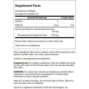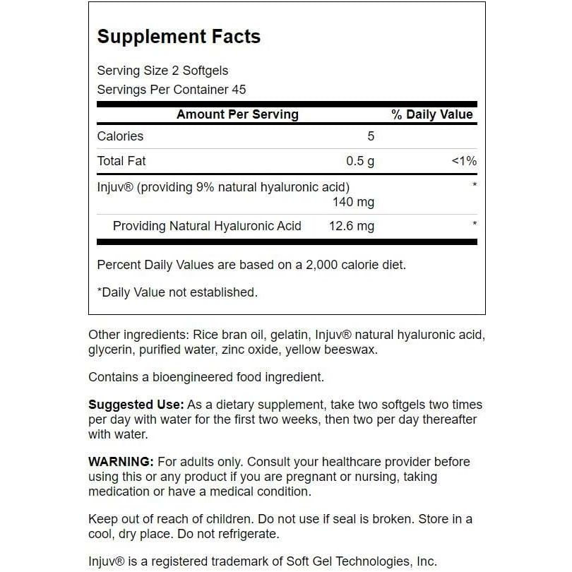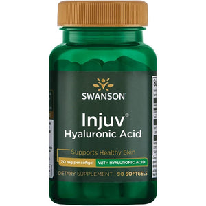 Swanson Injuv is a high-quality supplement developed to help your skin maintain its natural moistness and overall health. 140mg of Injuv (hyaluronic acid ingredient and Moisture Retention) per softgel.