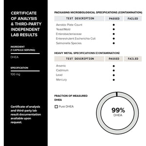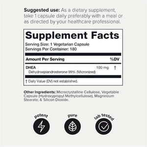 Each dose includes 100mg of ultra-pure DHEA, a potent dose that supports overall wellness and vigor every day.