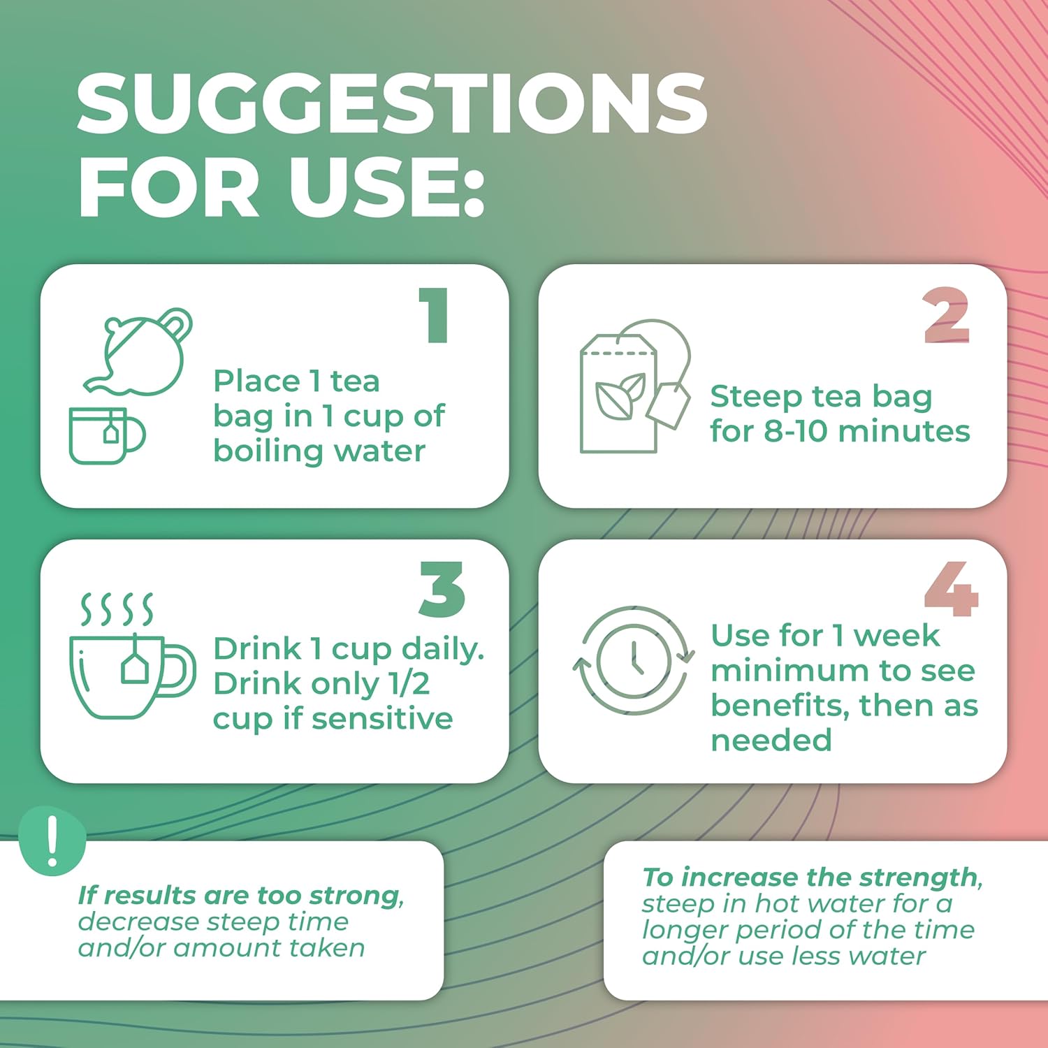 - Made in USA - GMP-compliant facilities, herbal slimming tea is Kosher-certified, Gluten Free, Caffeine Free and Vegan-Friendly. Our organic chamomile tea bags are available in 25 tea bags or 12 K-Cup Pods. For better results, we recommend taking Energy Tea in the morning and Detox Tea in the evening.