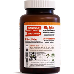 You've probably seen Turmeric supplements with Bioperine or Black Pepper Extract to increase the bioavailability. They work to a degree, but nothing like NovaSOL technology that converts Curcuma into a fully water-soluble, pH-stable form (easy for the body to absorb and use). This makes it 185X more bioavailable and 27X more powerful than standard curcumin.