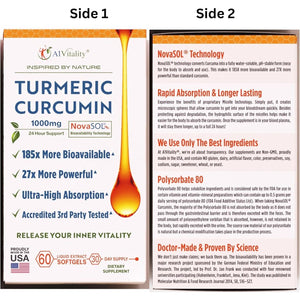 - Doctor Formulated & Backed by Science: A1Vitality Turmeric Curcumin is not only developed by healthcare professionals but also supported by scientific research. It stands out as a potent supplement, trusted by individuals of all ages and lifestyles offering a natural and effective solution for promoting overall health and vitality. Regardless of how you might spell Turmeric Curcumin - be it tumeric, turmic, curcumin, or curcuma - our NovaSOL Turmeric delivers consistent and reliable results