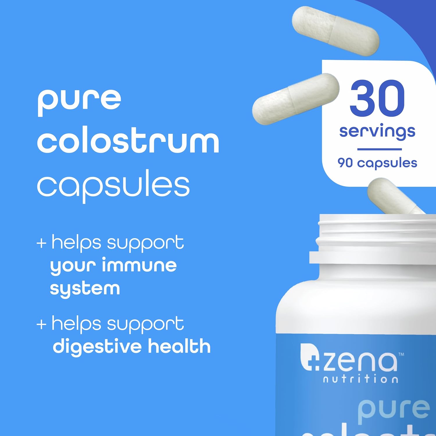 Zena Nutrition Bovine Colostrum Capsules Supplement for Gut Health, Immune & Digestive Support 90 Capsules